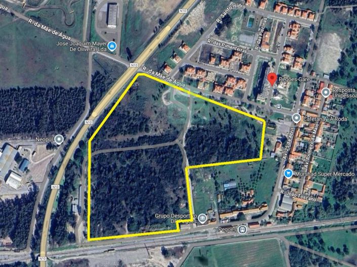 Rustic land with 108,508 m2, located to the south of Pegões-Gare between this nucleus and the railway, facing the West with the EN 10 and to the South with the South railway line and an unpaved street that connects to Largo José Ribeiro Santana, to the North by a green area and Rua da Mãe de Água that gives access to the Pegões-Gare agglomeration and the EN10 and to the East with a rustic building, school equipment and part of Av. April 25.